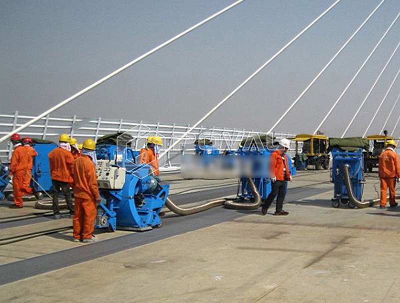 路面拋丸機能夠一次將混凝土的表面浮漿、雜質清理清除,并且可以對混凝土的表面進行打毛處理,使其表面均勻粗糙,大大提高了防水層和混凝土基層的黏著強度,以便防水層和橋面更好的結合,同時也能夠將混凝土的裂紋充分暴露出來,起到防患于未然的作用。