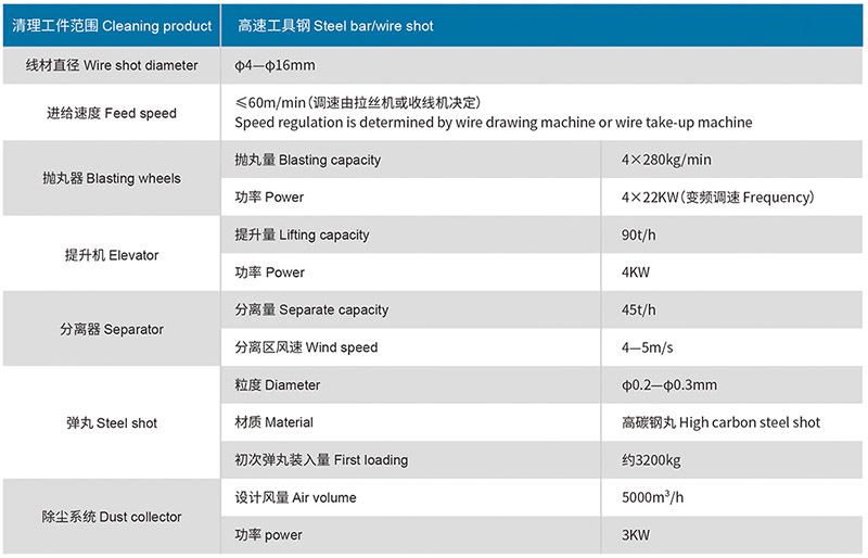 鋼筋拋丸機是根據用戶要求而設計制作的一種新型專用設備,是一種專門用于清理鋼筋、線材的拋丸清理設備。它能對原始狀態的鋼材表面施以強力拋丸,除掉其上的銹層、焊渣及氧化皮,使之獲得均勻一致的金屬光澤,以提高鋼材的涂飾質量與防腐效果。