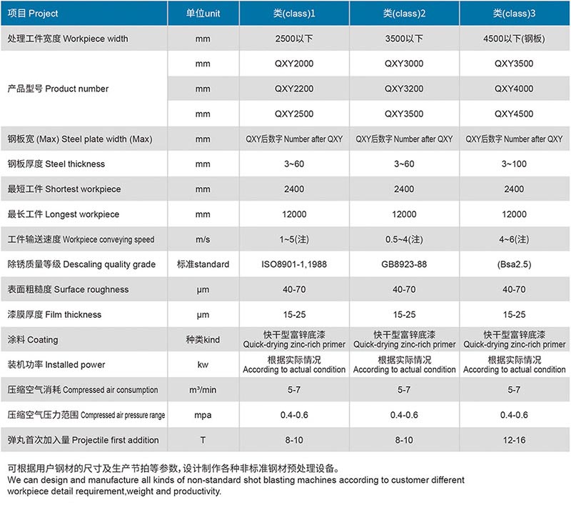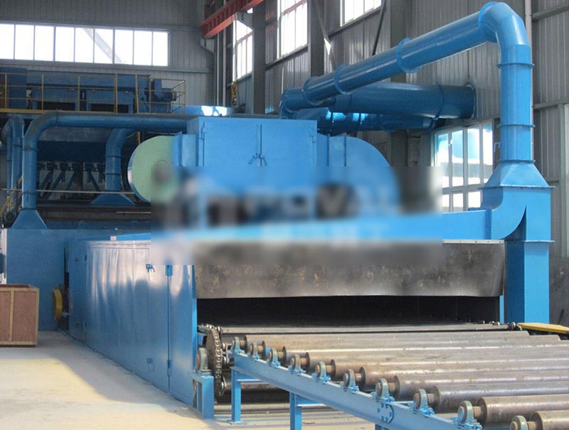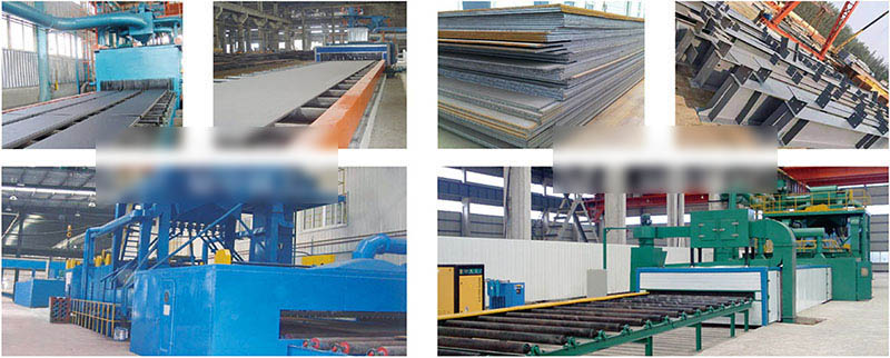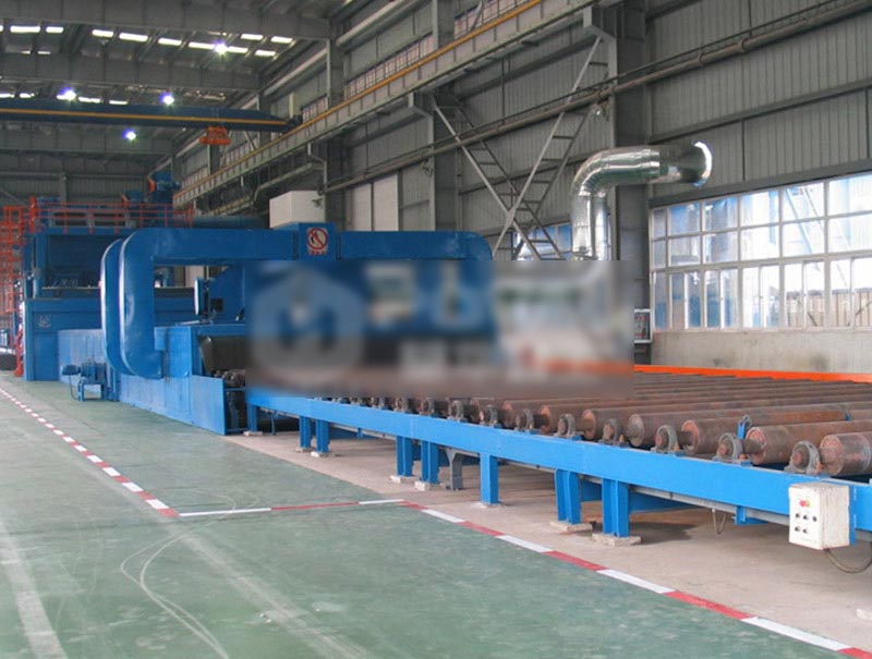 鋼材預處理線工藝是指鋼材在加工前(即原材料狀態)進行表面拋丸除銹并涂上一層保護底漆的加工工藝。鋼材經過預處理可以提高機械產品和金屬構件的抗腐蝕能力,提高鋼板的抗疲勞性能,延長其使用壽命;同時還可以優化鋼材表面工藝制作狀態,有利于數控切割機下料和精密落料。此外,由于加工前鋼材形狀比較規則,有利于機械除銹和自動化噴漆,因此采用鋼材預處理可大大提高清理工作的效率,減輕清理工作的勞動強度和對環境的污染。