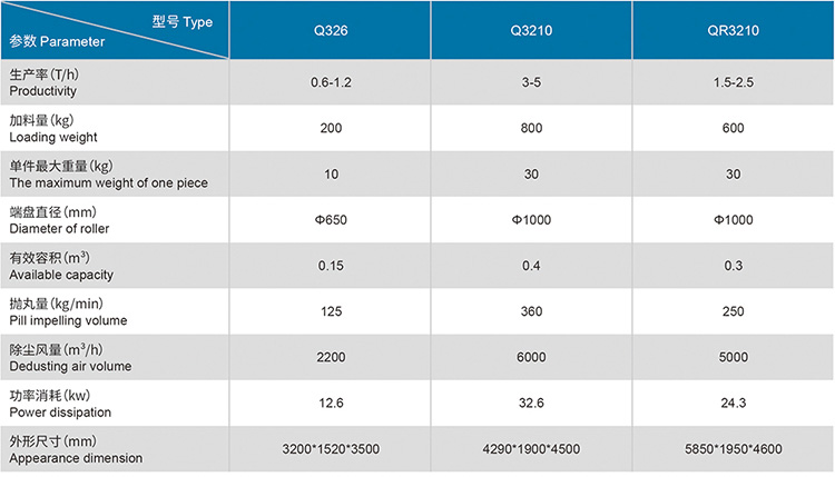 該系列適用于各種中、小型鑄件、鍛件及機加工件的表面清理、除銹以及拋丸強化工藝。它適用于不同的生產規模,既可單獨使用,也可多臺聯用,與連續輸送器等配套組成生產清理流水線,是中、小型清理工件的理想清理設備。Q32系列履帶式拋丸清理機具有設計先進、結構合理、耗能小、效率高等優點。