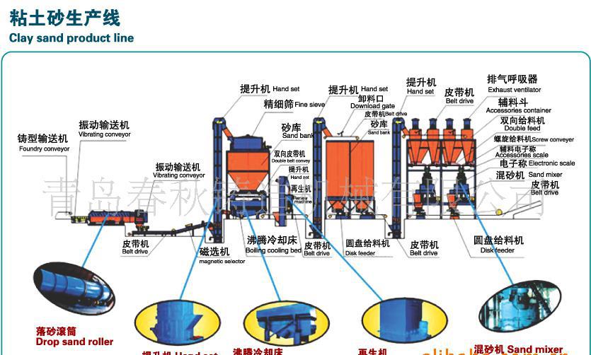 振動輸送機(jī)、鑄型輸送、皮帶機(jī)、懸掛磁選機(jī)、提升機(jī)、精六角篩、砂庫、雙向皮帶機(jī)、沸騰冷卻床、提升機(jī)、再生機(jī)、皮帶機(jī)、提升機(jī)、卸料器、皮帶機(jī)、砂庫、圓盤給料機(jī)、皮帶機(jī)、提升機(jī)、皮帶機(jī)、排氣呼吸器、輔料斗、雙向給料機(jī)、螺旋給料機(jī)、輔料電子秤混砂機(jī)、皮帶機(jī)、圓盤給料機(jī)。